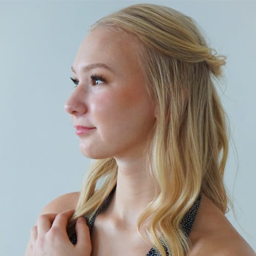 Complete your look with a professional application of makeup. This is traditional makeup or airbrush makeup.